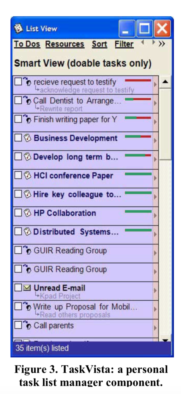 TaskVista Key Features (What a To-Do: Studies of Task Management Towards the Design of a Personal Task List Manager)